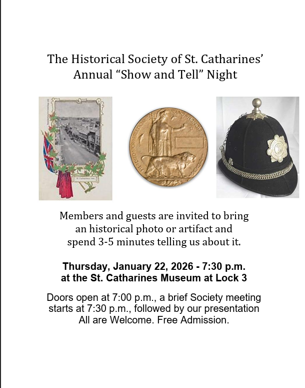 The Historical Society of St. Catharines was founded in 1927 and maintains its mission to increase the knowledge and appreciation of the history of St. Catharines and its vicinity. We meet formally nine times a year plus gather together for special events and excursions.