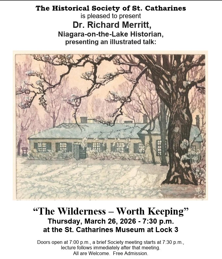 MARCH 26, 2026: “The Survival of “The Wilderness” in Old Town Niagara” — Dr. Richard Merritt discusses the rich history of a late 18th century home in Niagara-on-the-Lake that is currently being restored.