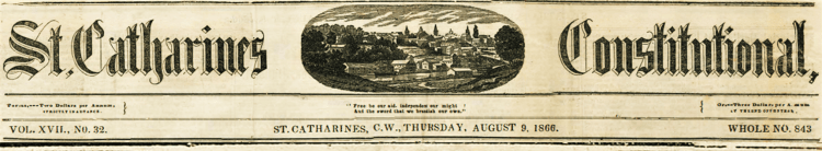 Extra! Extra! Gleanings from the St. Catharines Constitutional newspaper from 1858 and 1859 Posted bydsharronFebruary 27, 2021March 30, 2021Posted inHistorical Society On March 25, 2021 at 7:30 p.m., Board member and historian Brian Narhi will present new information gleaned from the old local newspaper, the St. Catharines Constitutional, dating from 1858 and 1859. Share this: Click to share on Facebook (Opens in new window) Facebook Click to share on X (Opens in new window) X Like Loading... Related