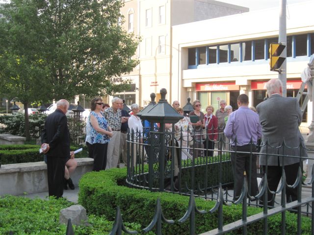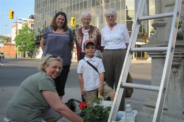 Each year the Historical Society holds a ceremony where a geranium is planted on the top of the Oille Fountain in downtown St. Catharines. This is done in commemoration of the donation of the first public drinking fountain in St. Catharines by Dr. Lucius Oille in 1878. This is the 33rd annual ceremony and descendants of Dr. Oille were in attendance. Photos provided by Maurice Gomme.
