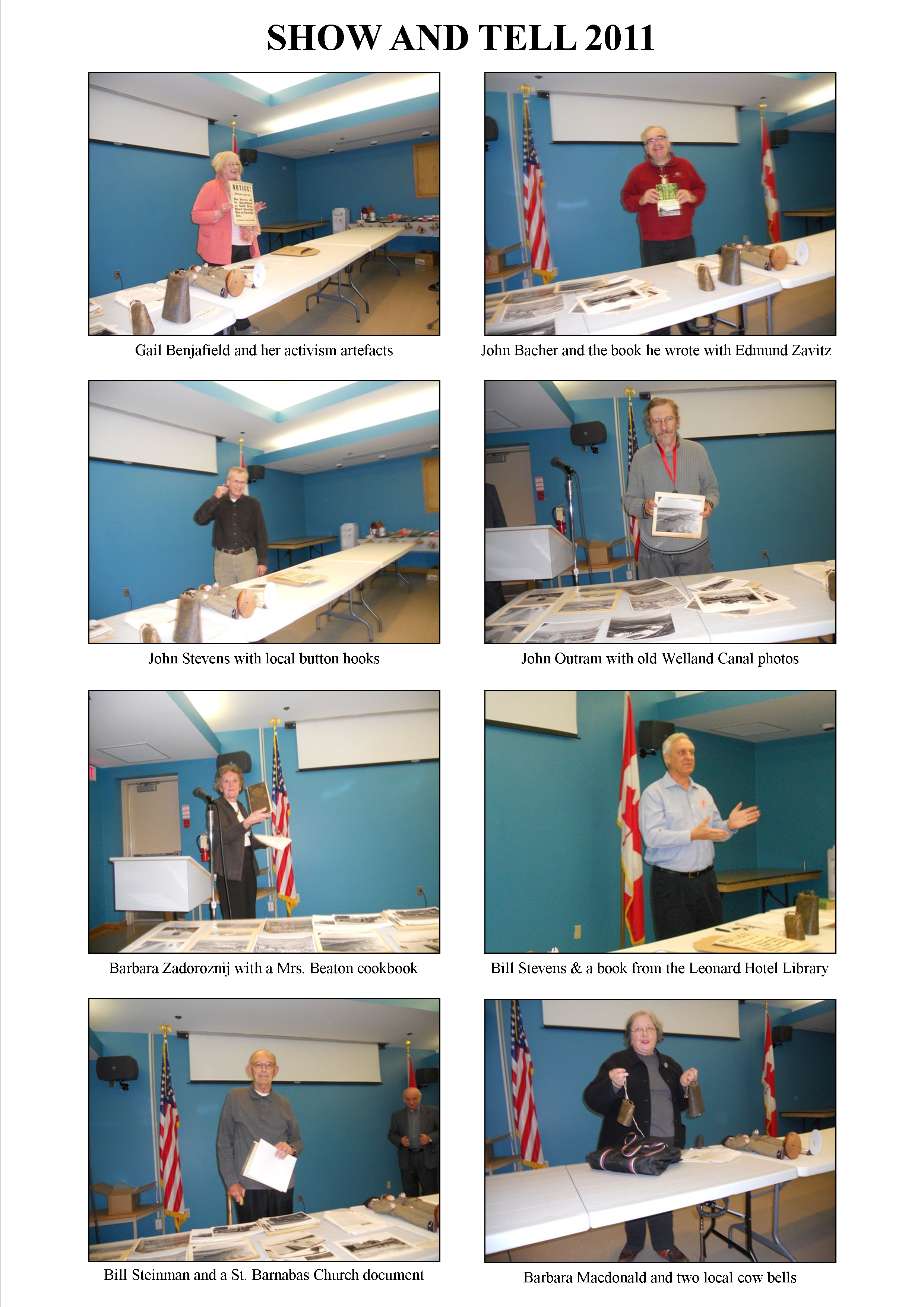 Once a year, the Historical Society encourages its membership to look in their basements, closets and attics for some treasures to share with the rest of the community. The interesting records and artefacts that are brought out are always interesting and triggers many memories and stories. Here are some images from the November 2011 Show and Tell Day.