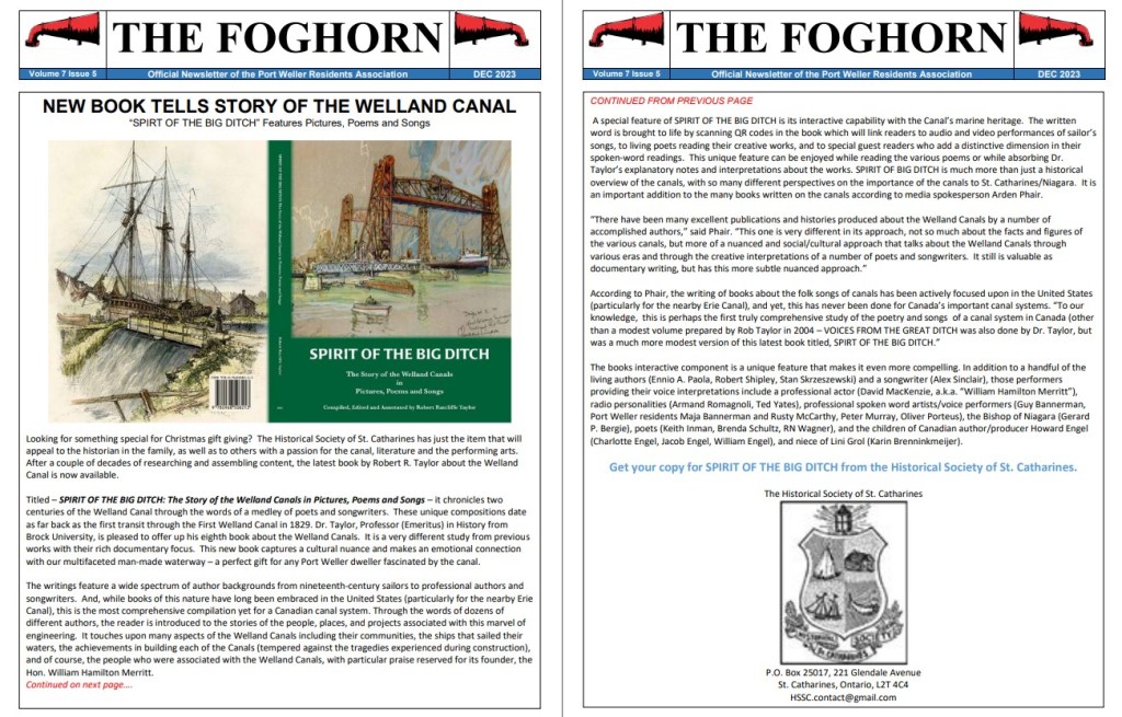 Article from The Port Weller Residents Association’s The Foghorn, December 2023