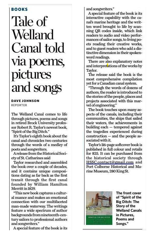 Article in The St. Catharines Standard by Dave Johnson, December 19, 2023, p. A6